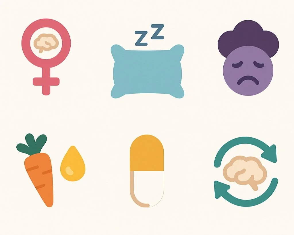 Estrogen levels drop during menopause and can disrupt memory and clarity. Many women report increased fog and forgetfulness. Fortunately, many symptoms are temporary and improve with lifestyle support and stress reduction.Sleep Issues