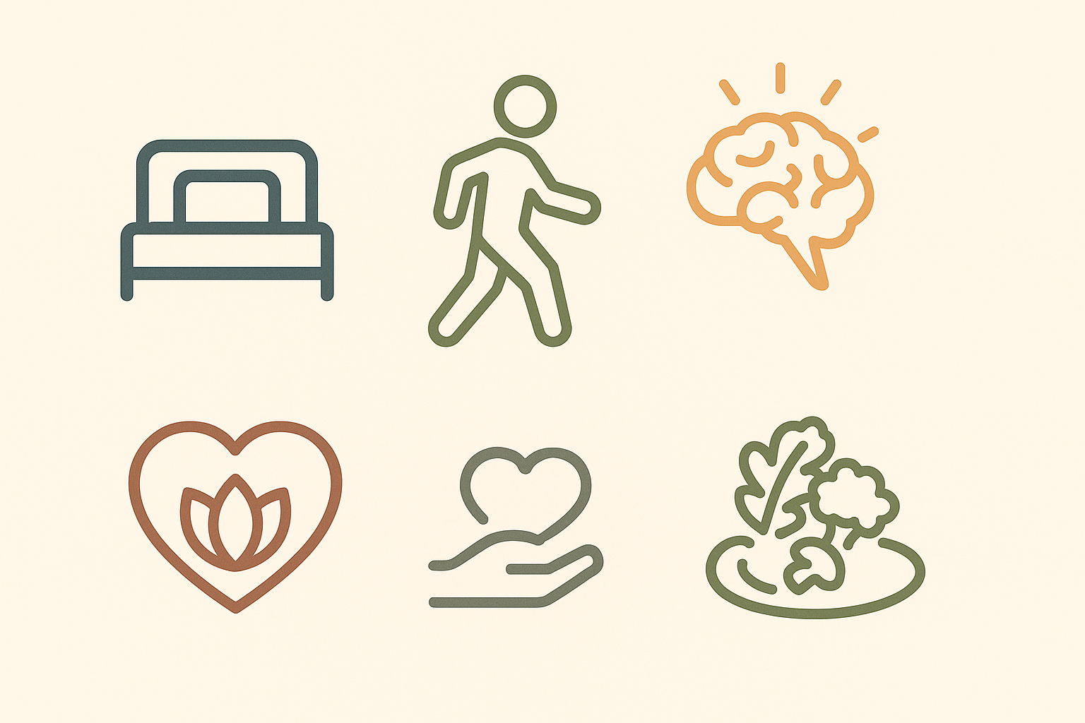 Quality sleep is essential for memory consolidation and mental clarity. Harvard research links disrupted or insufficient sleep with cognitive slowdowns—especially in midlife.Stress, Anxiety & Mood